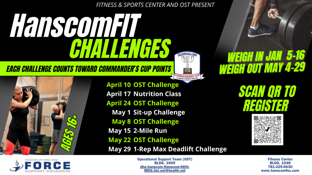 Ready to take your fitness to the next level? Join us at the Fitness & Sports Center for our HanscomFIT Challenges!